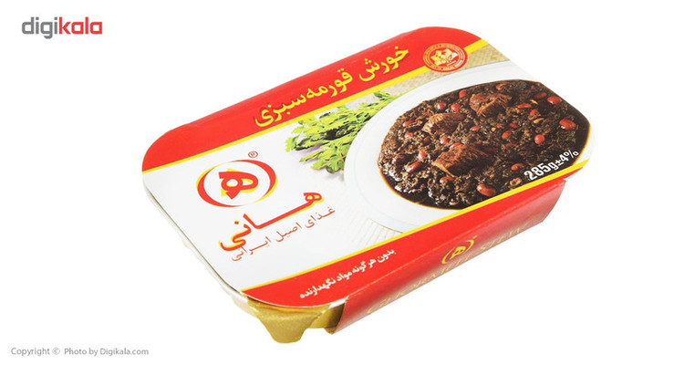 «هانی» انواع خورشها را بهصورت آماده در اختیار مصرفکنندگان قرار داده است؛ بنابراین تعجبی ندارد که خورش قورمهسبزی که یکی از محبوبترین غذاهای ایرانی است هم در بین این خورشها خودنمایی کند. خورش قورمهسبزی که ماده تشکیلدهنده اصلی آن لوبیا، سبزی قورمه (48% جعفری، 24% تره، 22% روغن سرخکردنی و 6% شنبلیله) و گوشت قرمز است،در بستهبندی آلومینیومی عرضه شده است.