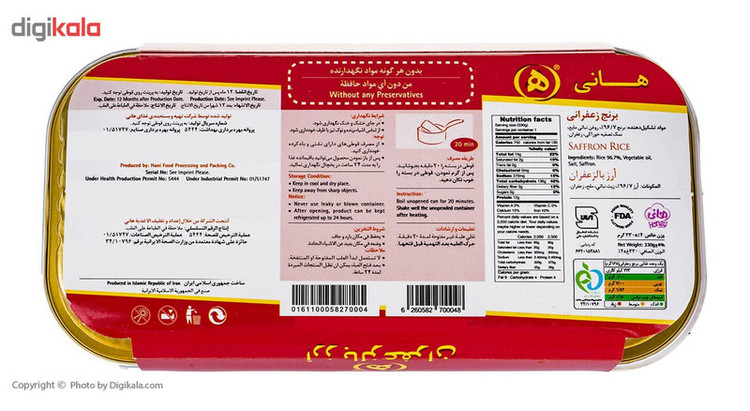 غذاهای ایرانی جزء غذاهای محبوب در جهان هستند و طرفداران بسیاری دارند. ایرانیها هرجای جهان که باشند غذای ایرانی را فراموش نمی کنند. با وجود دغدغهها و کمبود زمان، وقتی برای درستکردن غذاهای ایرانی که پخت آنها زمانبر است باقی نمیماند. با تولید کنسروها دیگر خوردن غذاهای ایرانی زمانبر نیست و میتوانید با گرم کردن کنسروها، لذت غذای ایرانی را تجربه کنید. شرکتهای تولید کننده کنسرو در تلاشاند تا غذاهایی که پخت آنها زمان بر است را تولید کنند و افراد بدون دغدغه بتوانند طعم لذیذ غذای ایرانی تجربه کنند. کنسروها زمان تجربه غذای های خوشمزه را کوتاه کردهاند و به راحتی میتوان با صرف زمان کمتر، یک غذای خوشمزه و مفید را تجربه کرد. «هانی» یکی از شرکتهای تولید کننده کنسروهای باکیفیت است و اکثر غذاهای ایرانی را بهصورت کنسرو برای مصرف کنندگان تولید میکند. برنج زعفرانی یکی از ملزومات سفره ایرانی است که با خورشهای مختلف طعمی بینظیر را بهوجود میآورد. این برنج زعفرانی توسط هانی بهصورت آماده درآمده است تا افرادی که زمان کافی برای پخت این غذا را ندارند، بتوانند از آن لذت ببرند. برنج زعفرانی هانی، 330 گرم وزن دارد و بستهبندی آن به بهترین شکل صورت گرفته و از جنس آلومینیوم است که نشانگر احترام این برند به طبیعت و حفاظت از محیط زیست است. برای گرم کردن برنج زعفرانی هانی، میتوانید از ماکروویو استفاده کنید اما در آن باید باز باشد تا غذا بهخوبی گرم شود.
