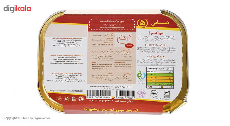 خوراک مرغ هانی، تا 24 ساعت پس از باز کردن قابل استفاده است و 285 گرم وزن دارد. بستهبندی این غذای آماده به بهترین شکل صورت گرفته و از جنس آلومینیوم است که نشانگر احترام این برند به طبیعت و حفاظت از محیط زیست است. برای گرم کردن خوراک مرغ هانی، میتوانید از ماکروویو استفاده کنید اما در آن باید باز باشد تا غذا بهخوبی گرم شود.