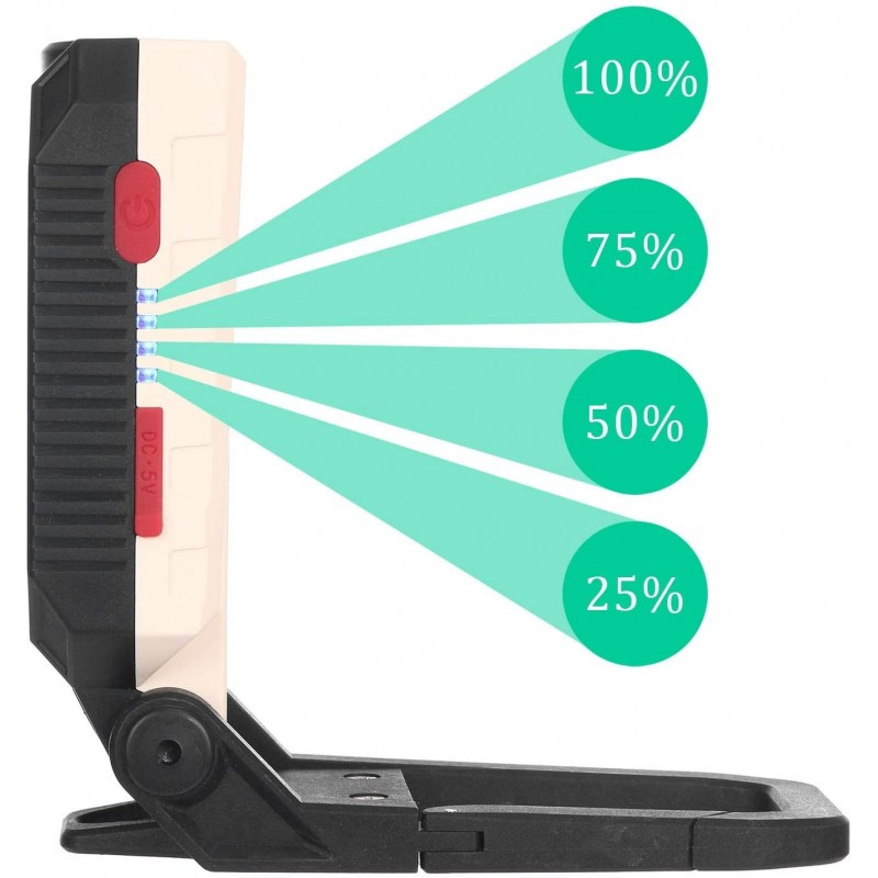 چراغ شارژی ال ای دی مدل W598B چراغ شارژی ال ای دی مدل W-598B که به آن چراغ کار نیز می گویند، دارای جنس بدنه ایی از نوع پلاستیک فشرده بوده و همین امر باعث شده است تا در برابر ضربه و آسیب مقاوم باشد. چراغ شارژی ال ای دی مدل W-598B در واقع از دو لامپ تشکیل شده است. یک لامپ در جلو به عنوان چراغ قوه و دارای نوردهی عالی و یک لامپ ال ای دی بسیار شفاف بر روی بدنه چراغ که دارای سه حالت نوردهی قوی،ضعیف و چشمک زن قرمز و آبی می باشد که از حالت چشمک زن آن بیشتر برای مواقع اضطراری و خطر استفاده می شود، همچنین دارای نشانگر شارژ می باشد که شما را از پر و یا خالی بودن باتری با خبر می کند. چراغ شارژی ال ای دی مدل W-598B از لحاظ برد نور نیز در رده بالایی قرار دارد به طوریکه برد نور آن 150 متر می باشد. چراغ شارژی ال ای دی مدل W-598B دارای یک پایه محکم است که می توان به شکل رومیزی از آن استفاده کردو قابلیت باز شدن تا زاویه 180 درجه را نیزدارد، همچنین دارای مگنت آهنربایی برای نصب بر روی سطوح فلزی می باشد و جدا از این ها هم دارای حلقه آویز نیز می باشد. در واقع چراغ شارژی ال ای دی مدل W-598B بهترین وسیله برای صنعتگران، تعمیرگاه ها و.. می باشد و با حلقه ایی که دارد به راحتی می توانند بروی کمربند نصب کنند و همیشه قابل دسترس باشد. منبع تغذیه منبع تغذیه چراغ شارژی ال ای دی مدل W-598B توسط کابل یو اس بی صورت می گیرد