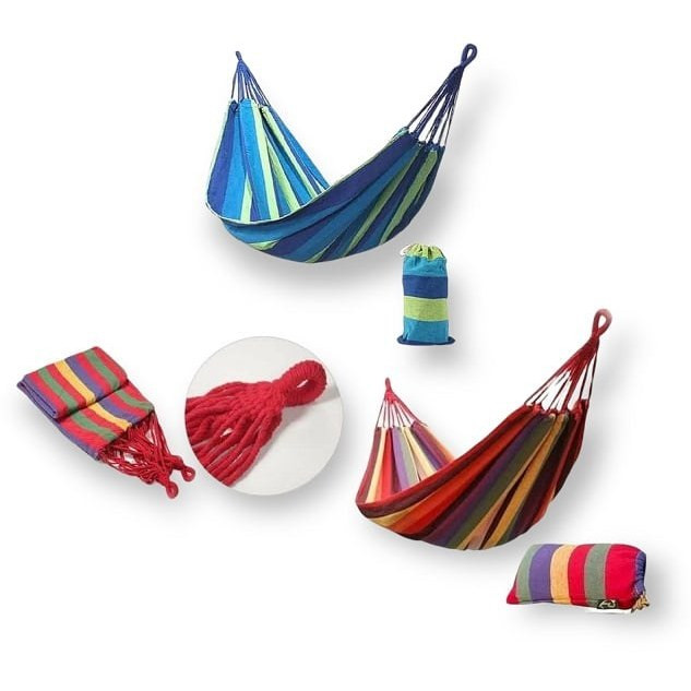 تخت آویز معلق ننو تک نفره یک وسیله بسیار شیک و کاربردی در سفرها و طبیعت گردی است. در مسافرتها خواب راحت و استراحت کافی عوامل مهمی هستند که با توجه به شرایط سفر و امکانات موجود در بیشتر مواقع مهیا نمیشود. تخت آویز معلق ننو این امکان را فراهم کرده تا در طبیعت گردی و مسافرتهای خود بتوانید به راحتی استراحت کرده و با انرژی بیشتر به سایر فعالیت های خود بپردازید.این تخت آویز علاوه بر قیمت ارزان و کیفیت مناسب ، دارای طراحی خاص و رنگ های بسیار جذاب است. از ویژگی مهم استفاده کردن از ننو معلق، در امان ماندن از آسیب و نیش حشرات و حیوانات روی زمین است. از ننو میتوان در داخل ساختمان، باغ، حیاط،بام خانه و نیز در مسافرتهای برون شهری بهویژه در مناطق جنگلی استفاده کرد.