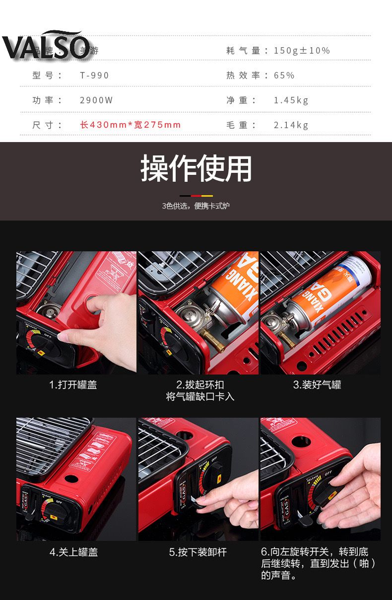 این منقل گازی با کپسول گاز فشنگی استوانهای 220 گرمی (بوتان یا ایزوبوتان) کار میکند.