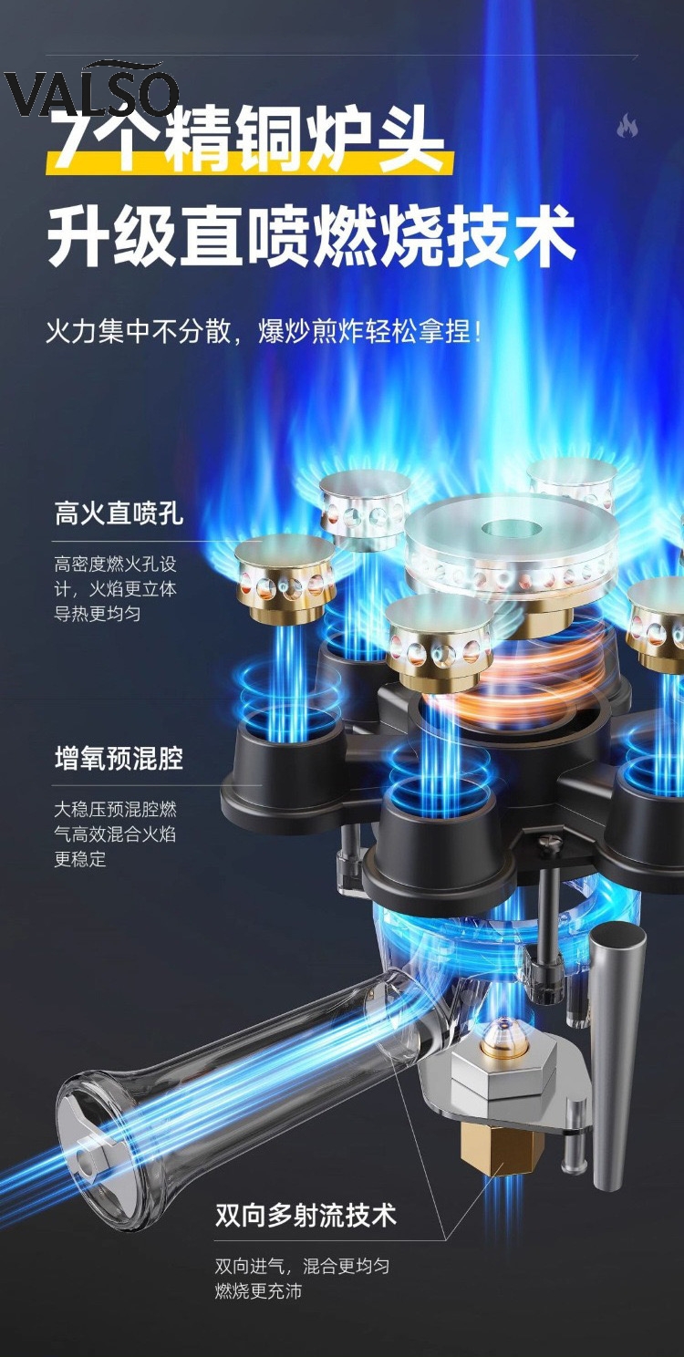 با تکنولوژی احتراق مستقیم (Direct Injection) و ۷ سرشعله/سری مسی، شعله یکنواختتر شده و گرمایش سریعتری میگیرید— ۱ لیتر آب را حدود ۴ دقیقه به جوش میآورد (بسته به شرایط محیط و نوع ظروف).