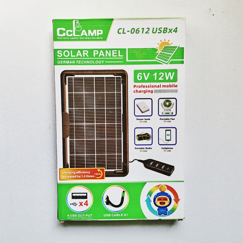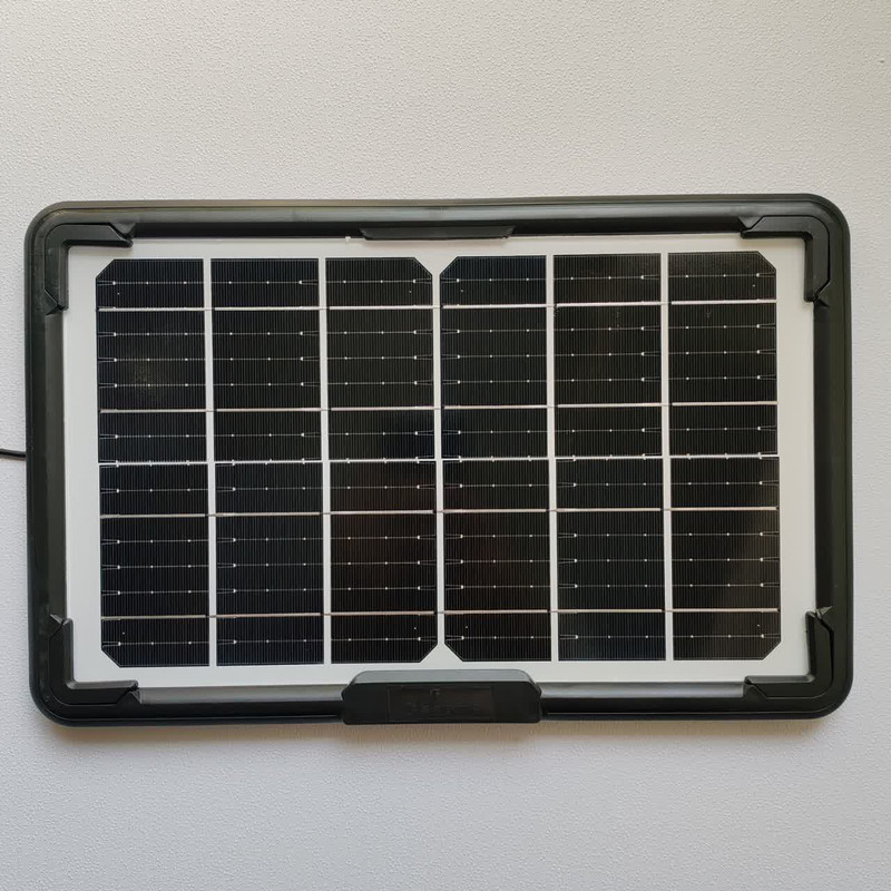 پنل سولار جهت تولید جریان الکتریکی از انرژی خورشیدی مورد استفاده قرار می گیرد. پنل 12 وات حاضر جهت استفاده های محدود مانند شارژ تلفن همراه و موارد این چنینی بسیار مناسب می باشد. راندمان این پنل 16.5 درصد و از نوع پنل های پلی کریستال میباشد.. توان انرژی الکتریکی تولید شده در این پنل 12 وات است که می توان با جریان ماکزیمم 1.333 آمپر تولید شده توسط آن موبایل هوشمند و یا تبلت خود را به راحتی شارژ کرد.