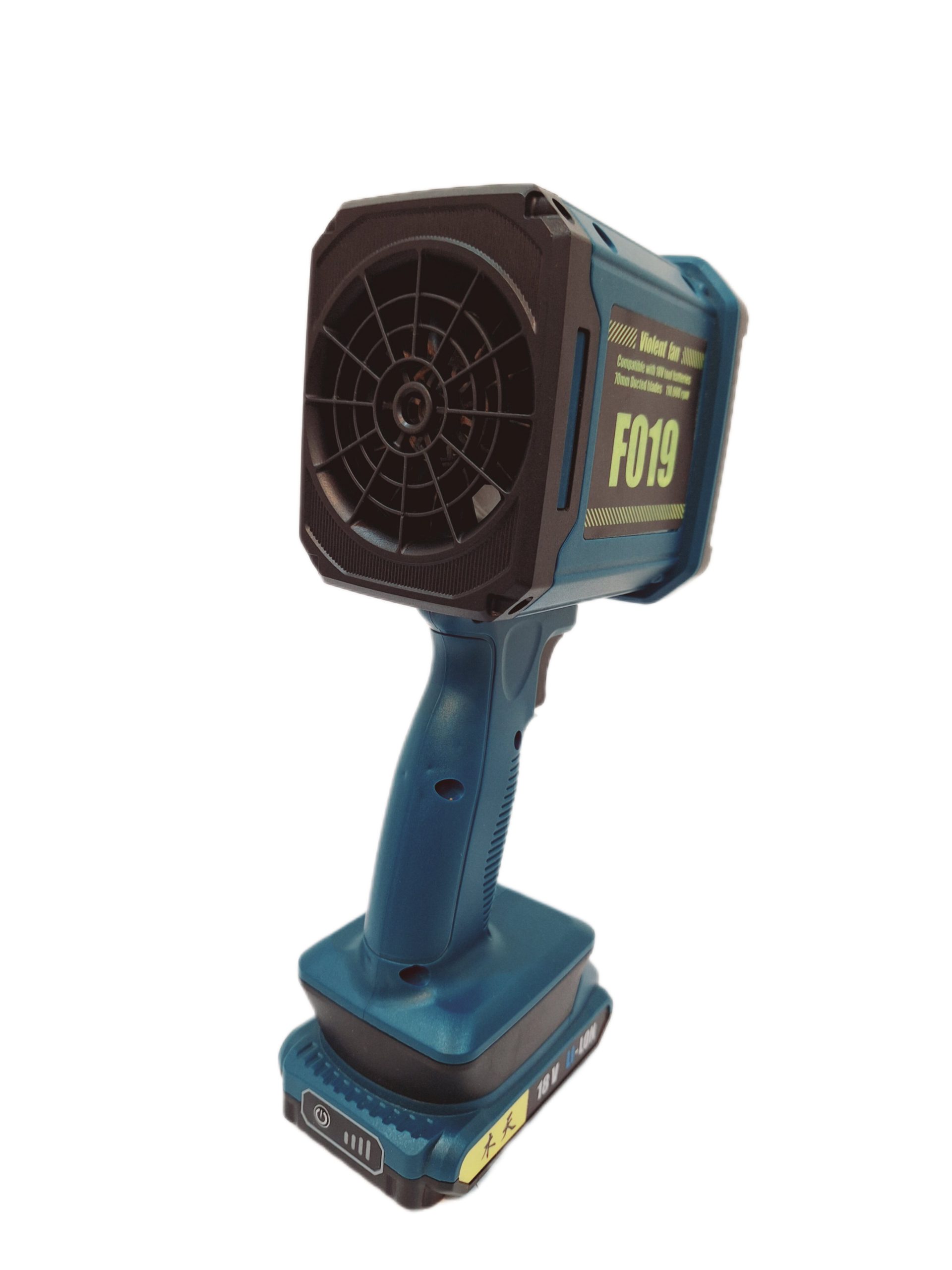 جت فن و دمنده Violent Fan مدل F019 با ابعاد ۲۹*۱۲*۹.۵ سانتیمتر و وزن با باطری ۸۵۰ گرم، بهراحتی در دست جای میگیرد و حمل آن آسان است. بدنه این دستگاه از پلاستیک ABS با کیفیت بالا ساخته شده است که علاوه بر